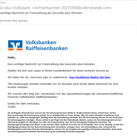Betrügerische Mails der Volksbank und Raiffeisenbank im Umlauf